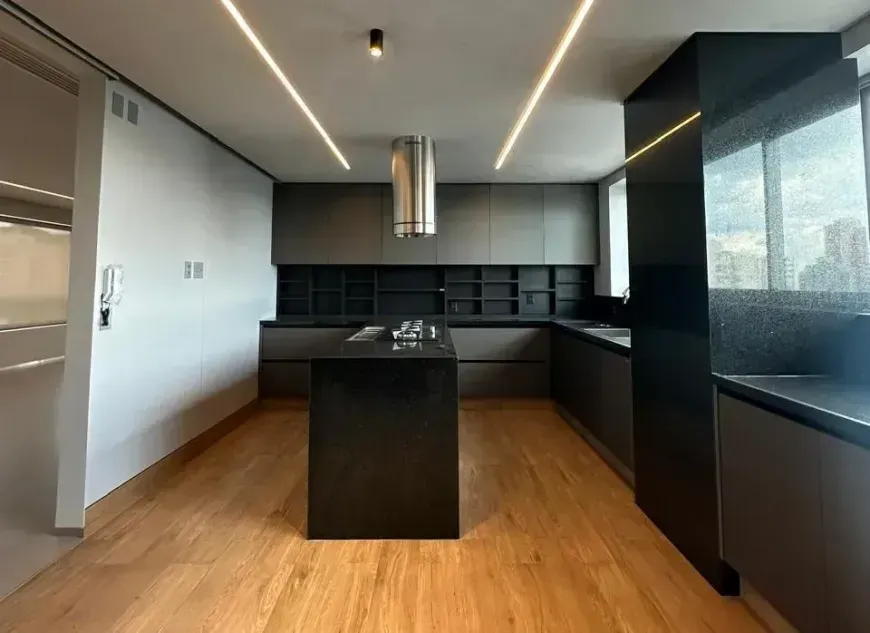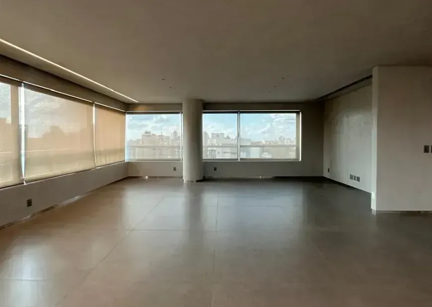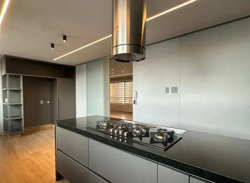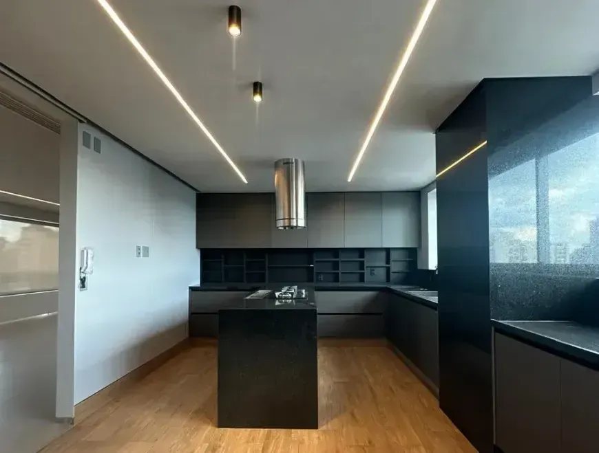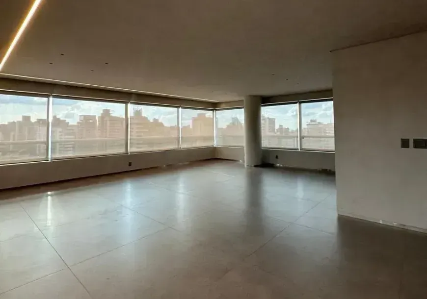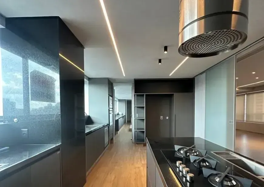 Apartamento novo, nunca habitado, com 311 m², localizado em torre única com 18 pavimentos, revestida em pele de vidro e brises de alumínio, com apenas uma unidade por andar. Possui sala ampla para quatro ambientes, lavabo, quatro suítes com closet, sendo a suíte master com duas cubas e banheira. A cozinha conta com um grande balcão estilo americano, mas é fechada com porta Silex. Há ainda área de serviço independente e dependência completa de empregada com dois quartos. O imóvel possui ar condicionado central em todo o apartamento, todas as portas são em Silex, sistema de aspiração de pó central e armários planejados da Kitchens na cozinha eletrodomésticos, área de serviço e quartos.