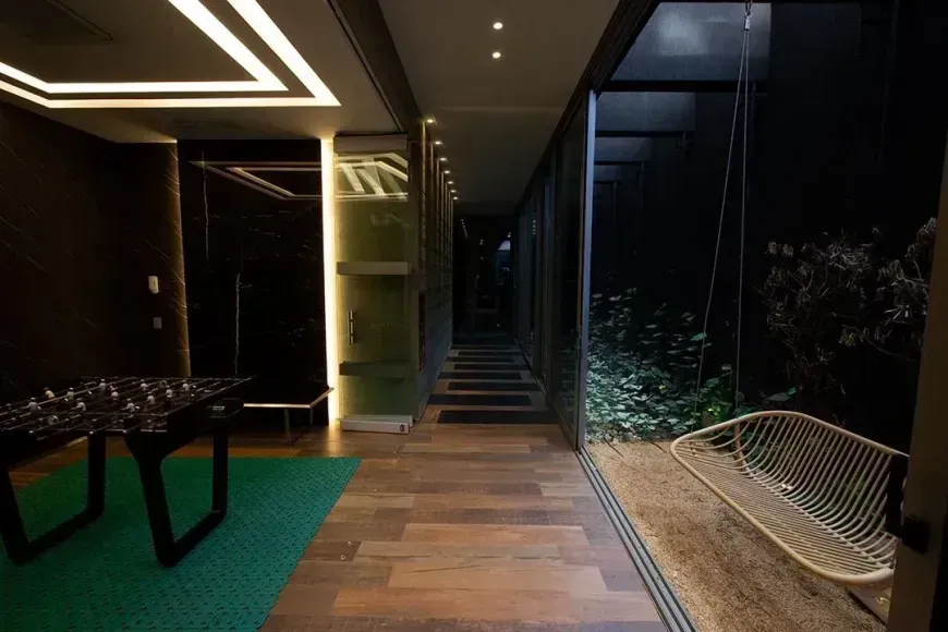 São quatro vagas de garagem, sendo duas livres e duas presas. O edifício conta com jardim frontal com colunas espelhadas e pé-direito duplo no hall de entrada. A área de lazer inclui piscina coberta com raia de 25 metros, spa para seis pessoas, sauna, academia equipada e salão de festas com espaço gourmet. Um imóvel exclusivo que combina sofisticação, conforto e privacidade.