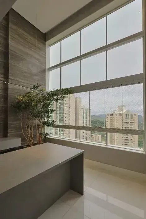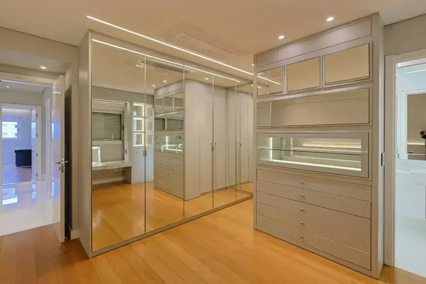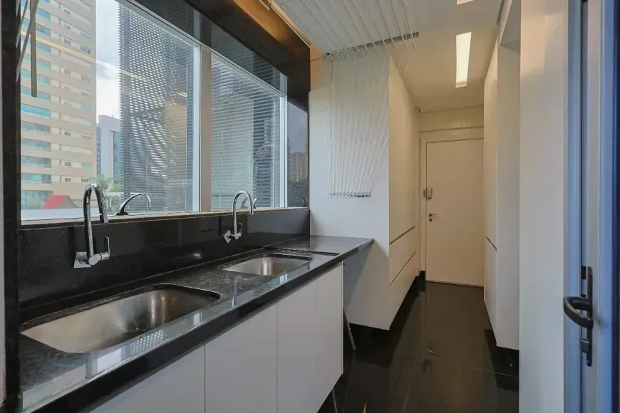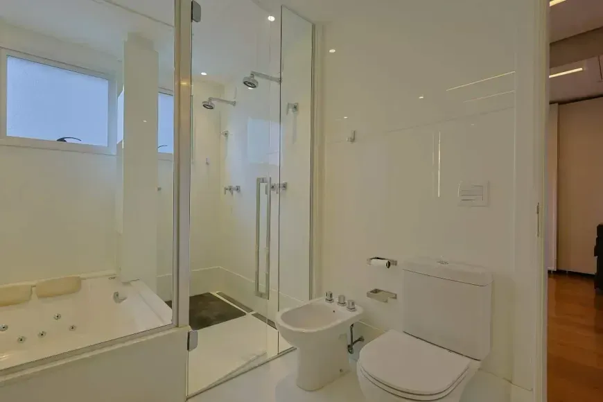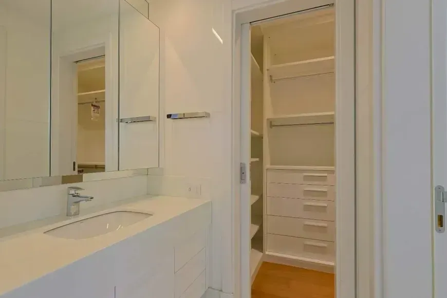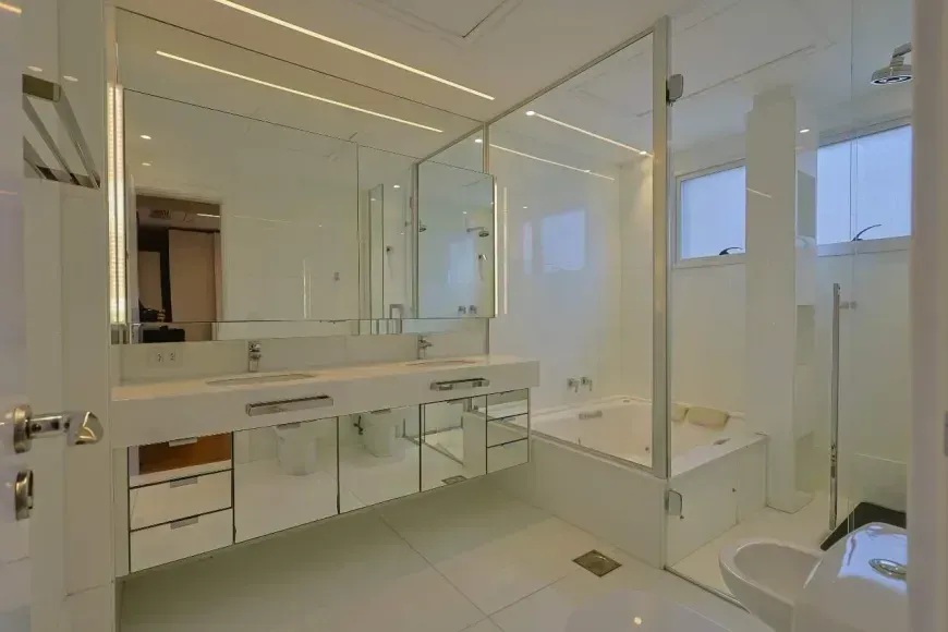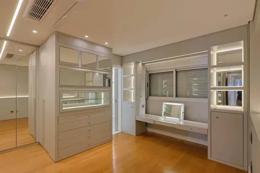 A parte íntima se destaca pelas 3 suítes com closet, marcenaria sob medida, projeto de iluminação, climatização com aparelhos estilo ‘cassete’, além de piso em madeira e janelas com venezianas estilo ‘black-out’ com acionamento automático. Destaque para a suíte principal com quarto de banho com hidromassagem, 2 duchas no box e bancada com 2 cubas. Finalmente, um home-office, 4 vagas de garagem e box de despejo estarão disponíveis para os moradores desta linda opção.