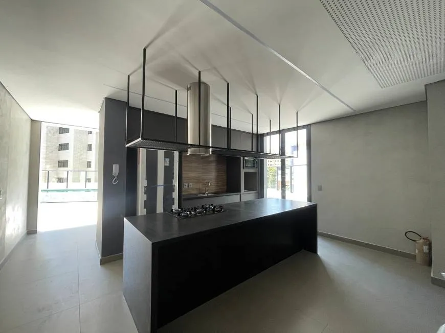 O APARTAMENTO conta 150 m² de área útil, podendo ter 3 ou 4 quartos, sendo 2 suítes, acabamento de luxo, sala para 2 ambientes com piso em porcelanato, lavabo, varanda, cozinha em granito verde Ubatuba, Área de serviço com DCE, 3 vagas de garagem, medição de água e gás individualizadas, sistema central de aquecimento a gás dos banheiros, previsão para ar-condicionado nos quartos e sala.