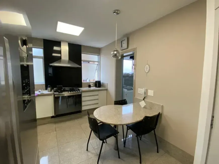 Apartamento padrão Caparaó de construção, ícone no bairro, conta com hall de entrada privativo, são aproximadamente 240m², sala para até 3 ambientes com rebaixamento de teto em gesso, iluminação e som planejados, varanda ampla e arejada, lavabo, cozinha muito espaçosa e toda montada com armários planejados, mesa para refeições rápidas, despensa, área de serviço independente e com armários, quarto e banheiro de serviço.