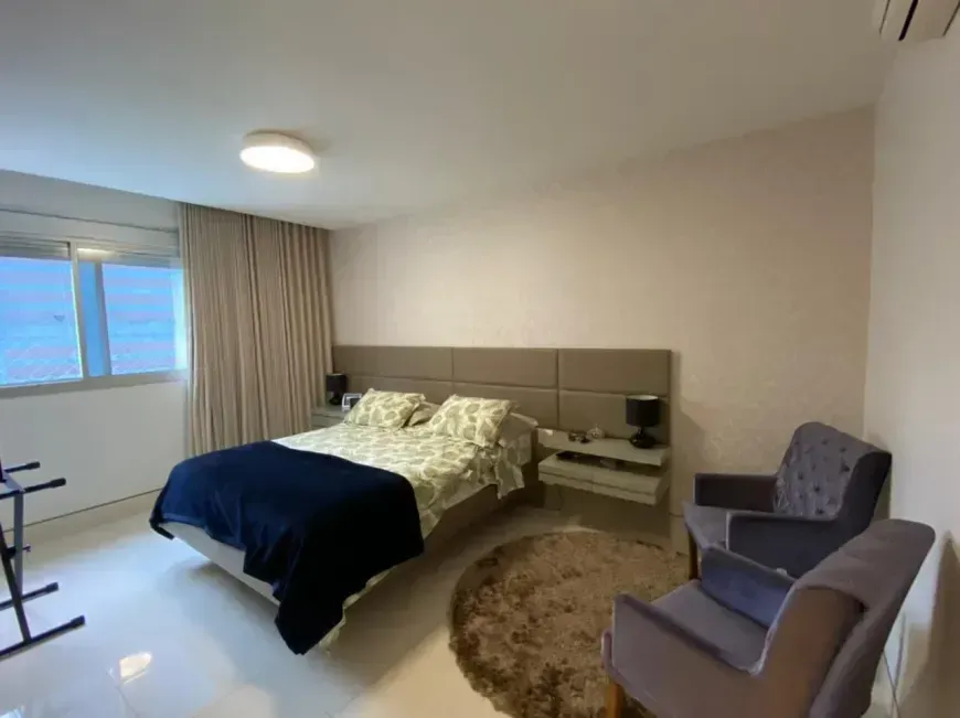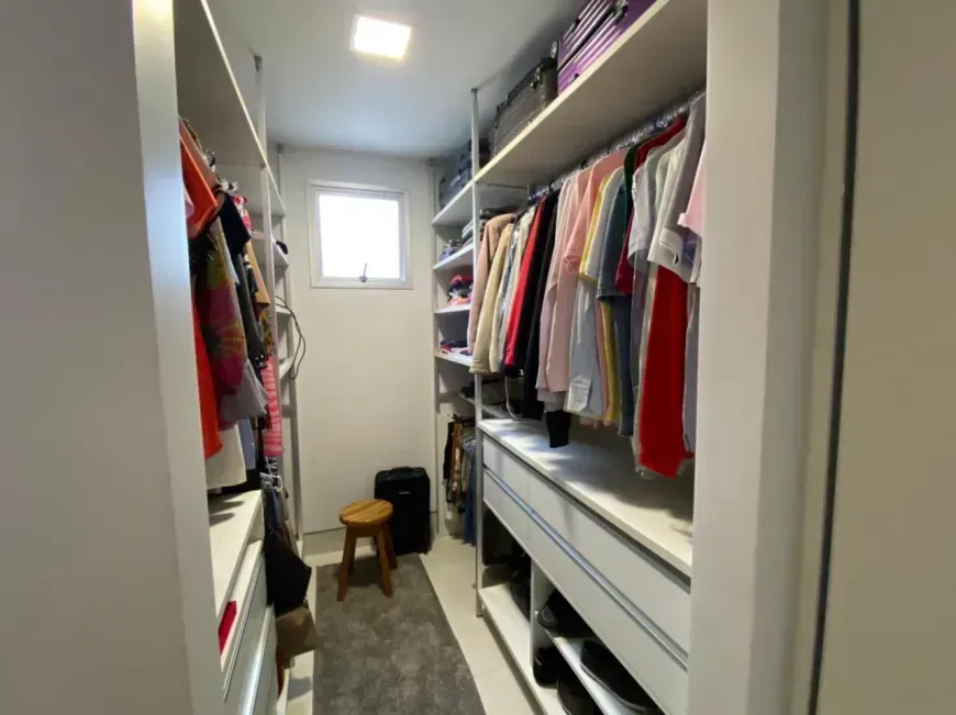 Área íntima com rouparia no corredor e 4 quartos sendo 2 suítes e 2 semissuítes, todos os quartos com armários planejados e a suíte máster com closet e ar condicionado. O apartamento ainda conta com 4 vagas de garagem livres e cobertas e box de garagem.
