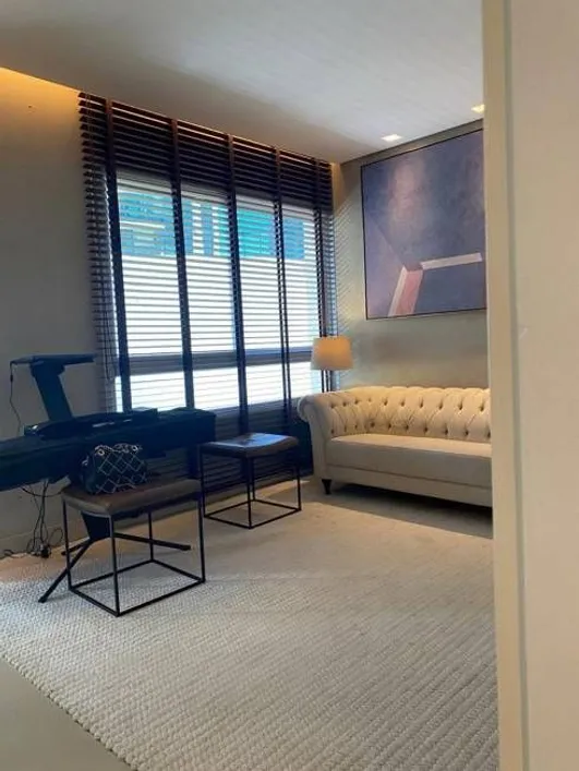 Apartamento claro e arejado, sala para 2 ambientes com varanda gourmet integrada com cortina de vidro. Planta original de 3 quartos transformado em 2 ( 1 foi anexado a sala adaptado como home office) sendo facilmente reversível. 2 quartos sendo 1 suíte, banho social, cozinha montada com armários e eletrodomésticos novos, área de serviço, banho de serviço. Armários novos ,teto rebaixado com iluminação embutida e caixas acústicas em todo o apartamento. Porcelanato na sala, cozinha, área de serviço e banheiros. Laminado nos quartos. 2 vagas em linha.