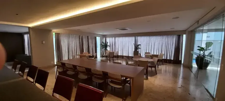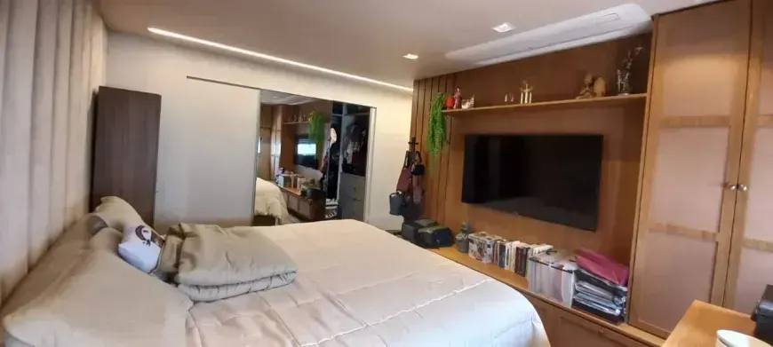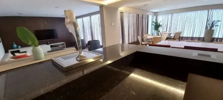 Cobertura de Alto Luxo , exclusividade e sofisticação em cada detalhe. Uma cobertura única, onde cada espaço foi pensado para unir conforto, elegância e tecnologia de ponta. São 5 suítes, todas climatizadas, sendo a master com um closet dos sonhos. No primeiro pavimento, você encontra: • 4 suítes amplas, iluminadas e com ar condicionado. • Sala com varanda e lavabo. • Cozinha completa com ilha e acabamentos impecáveis. • Área de serviço independente. No pavimento superior: • 1 suíte privativa com varanda; • Sala espaçosa e acolhedora; • Lavabo; • Área externa perfeita para receber amigos e familiares: churrasqueira e hidromassagem privativa com vista privilegiada. Diferenciais que fazem dessa cobertura um imóvel único: • Ar-condicionado em todos os ambientes´; • 4 vagas de garagem; • Elevador com acesso aos dois níveis; • Fachada 100% revestida em granito; • Acabamento de altíssimo padrão. O prédio é um verdadeiro exemplo de modernidade e eficiência: • Energia solar com apoio a gás para aquecimento de água; • Iluminação em LED com sensores de presença nas áreas comuns; • Reaproveitamento da água da chuva para irrigação dos jardins; • Portaria virtual e sistema de segurança avançado com câmeras, alarme perimetral e elevadores com código de acesso; • Ar-condicionado nas áreas comuns. Área de lazer completa: • Piscina aquecida • Espaço fitness • Sauna • Espaço gourmet com chopeira • Salão de festas • Espaço kids