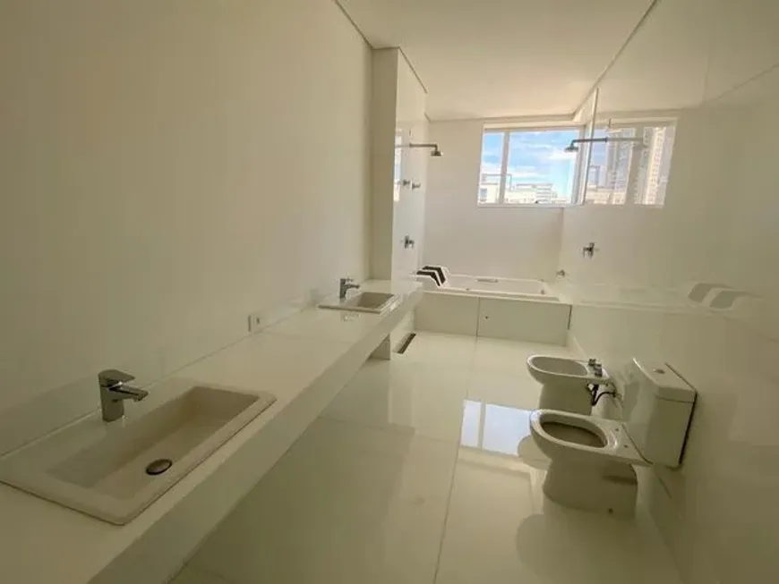 Cobertura 4 quartos com sala ampla para 3 ambientes, varanda, estar íntimo, 4 suítes sendo uma master com closet, hidro e chuveiro duplo, lavabo, cozinha com copa, despensa, lavanderia, DCE, sendo 1 apartamento por andar para maior privacidade. Projeto arquitetônico inteligente, sem corredores, com aproveitamento de 100% de área útil. PISO: Quartos em madeira maciça; Salão em Mármore Super-Nanoglass; Banhos das suítes e lavabo com piso, bancadas e revestimento de paredes em Mármore Super-Nanoglass; Cozinha e área de serviços com piso e bancadas em Granito Verde. GARAGEM: 6 vagas com box privativo.