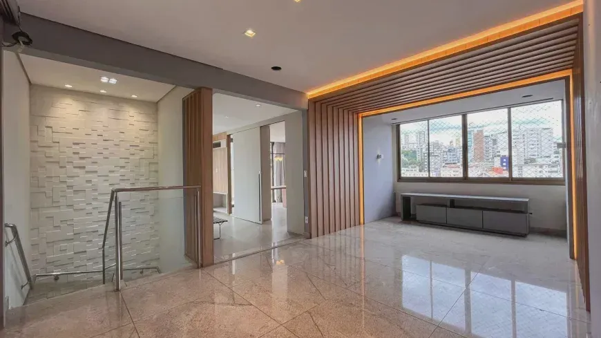 Cobertura à venda no Santo Antônio próximo do Minas Tênis Clube! 1° nível: Sala ampla para 03 ambientes com piso em mármore. Rebaixamento de gesso no teto com projeto de iluminação. Lavabo. 04 Quartos transformados em 03 com armários sendo sendo 03 suítes, Suíte máster com closet. Cozinha no conceito aberto toda reformada com excelentes armários planejados. Área de serviço repleta de armários. Banho de serviço. 2° nível: Sala ampla com piso em mármore. Rebaixamento de gesso no teto com projeto de iluminação. Sala de estar com acesso a área externa. 01 Quartos repleto de armários com acesso a área externa. Banho social com box em vidro temperado, armário, espelho e bancada em granito. Área Gourmet montada, Fogão e forno a lenha. Piscina. Ducha, Área livre descoberta. 05 vagas cobertas e demarcadas, sendo 03 livres e 02 em linha. Prédio imponente totalmente revestido. Hall social decorado. Guarita com Portaria 24 horas. 02 Elevadores. Lazer completo com Piscina adulto e infantil. Sauna com espaço de descanso. Playground. Quadra Poliesportiva. Academia. Espaço Gourmet. Salão de festas.