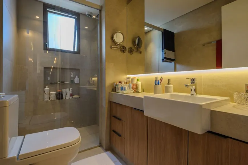 O apartamento se destaca pelo projeto impecável da arquiteta Marcia Carvalhais, com automação nos quartos, ar condicionado, armários da Cook, coifa perfeita da Crissair, Apto com planta super funcional com cozinha integrada. Marcenaria rica e impecável.